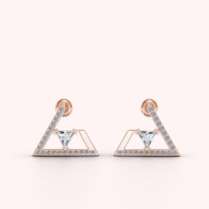 Adorn these Trilogy top diamond earrings with a center triangle cut solitaire giving a casual yet chic look.