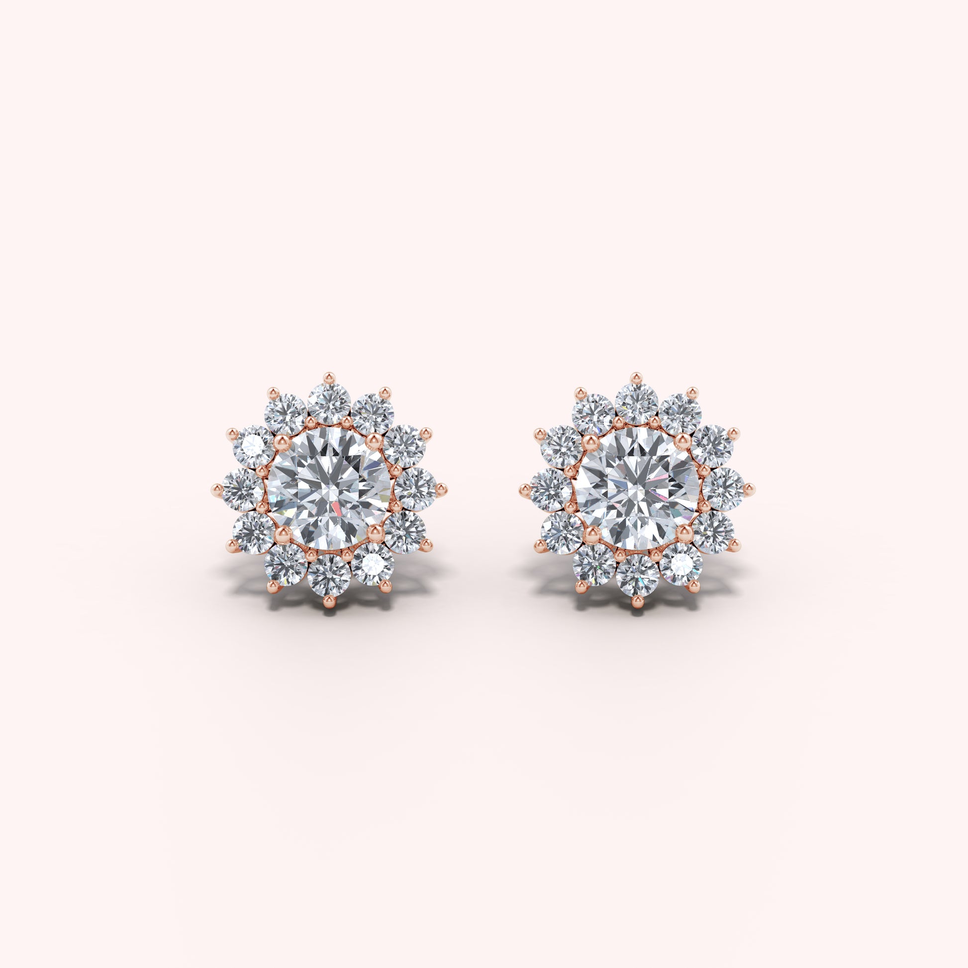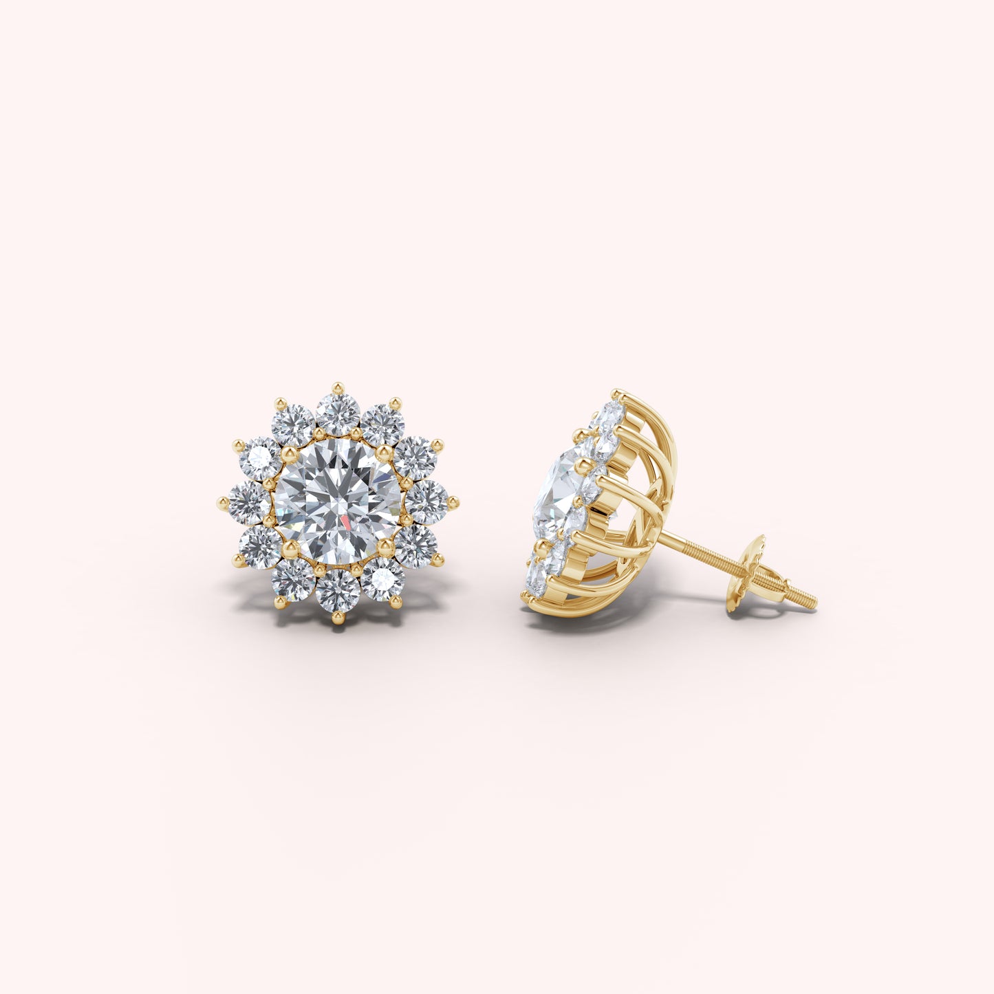 Sunflower diamond earrings adorned with round brilliant cut center stone enhanced with diamond petals.